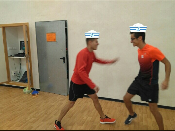 El capitán Mauro nos dijo que nos pusiéramos con nuestra pareja de camarote. Una vez estábamos emparejados, uno delante de otro, deberíamos intentar tocar a nuestro compañero la parte del cuerpo que nos decía nuestro capitán.