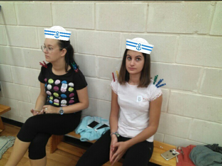 Para realizar este juego, nuestro capitán nos dividió en grupos de 7, que solemos utilizar para los abordajes. Uno de los 7 hizo la función de maniquí, colocándose diferentes pinzas en las partes del cuerpo que estamos trabajando, y los otros 6 debíamos ir a coger la pinza que se encontraba en parte del cuerpo que nos iba diciendo nuestro capitán. Después hicimos una variante, donde el maniquí se colocaba al final del barco.